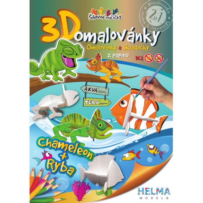3D omalovánky Chameleon a ryba