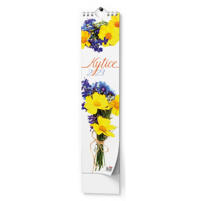 Nástěnný kalendář kravata - Kytice, 13 listů, české měsíční jmenné kalendárium, měsíční fáze, roční období, letní a zimní čas, východy a západy slunce, znamení zvěrokruhu.