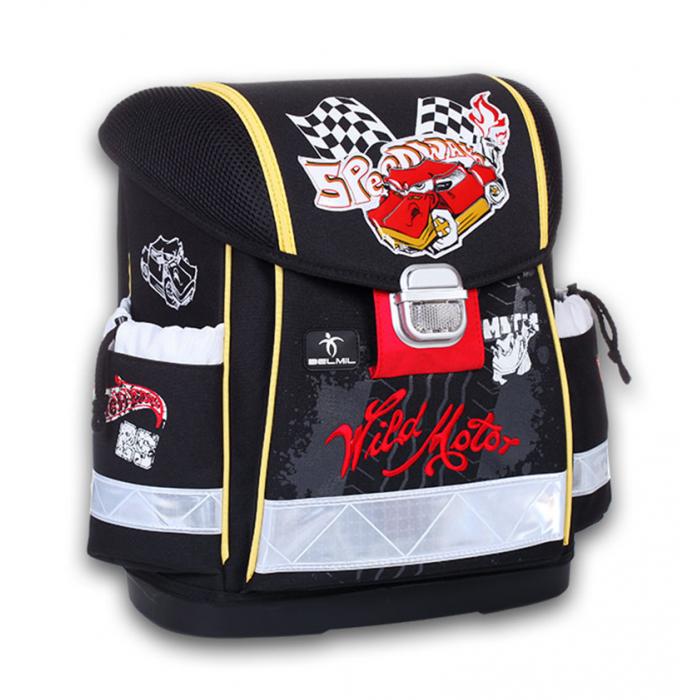 Lehký školní batoh (1000g) Wild Motor s mnoha funkčními prvky. Vyroben z vysoce kvalitního a nepromokavého materiálu. Zesílená konstrukce a pevné dno pro lepší stabilitu. Ergonomicky tvarovaná polstrovaná záda a ramenní popruhy. Spolehlivý a snadno použitelný kovový zámek. Mnoho reflexních prvků pro větší bezpečnost a viditelnost.