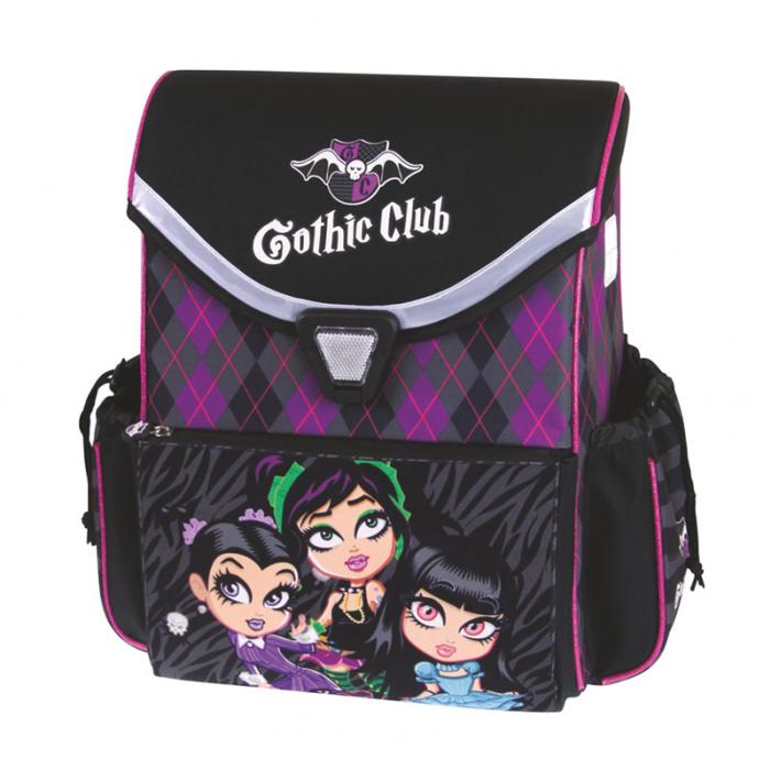 Školní batoh Gothic Club s pevnou konstrukcí. 3 vnější kapsy, vnitřní kapsa rozdělená přepážkou. Bezpečnostní reflexní prvky. Vodě odolná tkanina. Ergonomicky tvarovaná záda, měkké ramenní popruhy. Nový způsob lehkého otvírání a zavírání batohu.