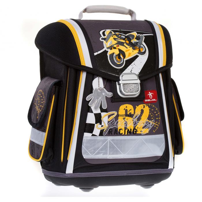 Lehký školní batoh (1100g) Speedway Racing s mnoha funkčními prvky. Vyroben z vysoce kvalitního, pevného a nepromokavého materiálu. Zesílená konstrukce a pevné dno pro lepší stabilitu. Ergonomicky tvarovaná polstrovaná záda a ramenní popruhy. Gumová rukojeť, poutko pro zavěšení. Spolehlivý a snadno použitelný kovový zámek. Reflexní prvky na všech stranách pro větší bezpečnost a viditelnost. Pevné dno pro lepší stabilitu.