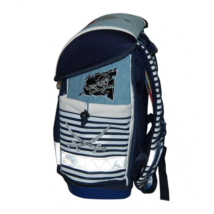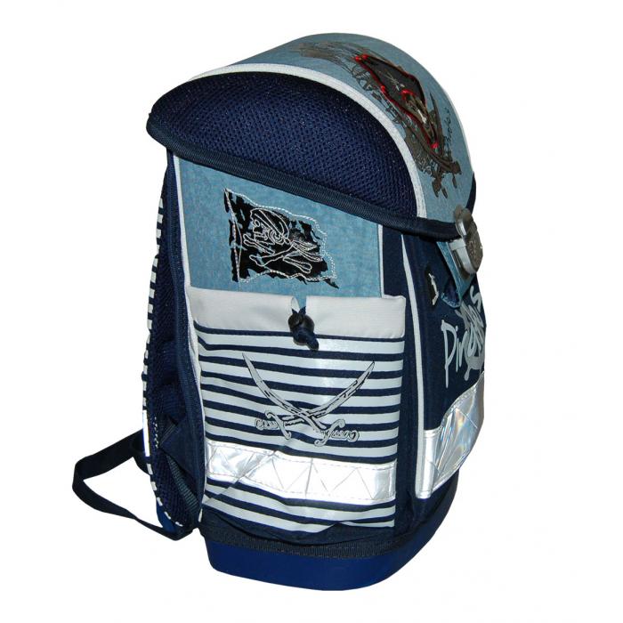 Lehký školní batoh (1000g) Pirates s mnoha funkčními prvky. Vyroben z vysoce kvalitního, pevného a nepromokavého materiálu. Zesílená konstrukce a pevné dno pro lepší stabilitu. Ergonomicky tvarovaná polstrovaná záda a ramenní popruhy. Gumová rukojeť, poutko pro zavěšení. Spolehlivý a snadno použitelný kovový zámek. Reflexní prvky na všech stranách pro větší bezpečnost a viditelnost.