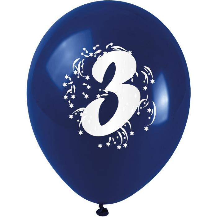 Nafukovací balónky střední s číslem 3, balení obsahuje mix barev.