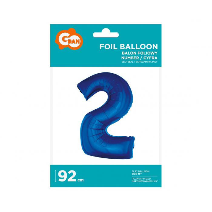 Fóliový balónek č.2 modrý kat.č:40424EAN:5901238640424Skladem:7 ksmin.odběr:1 ksVelikost:92 cm Výrobce:Godan Nafukovací fóliový balónek č.2, modrý.