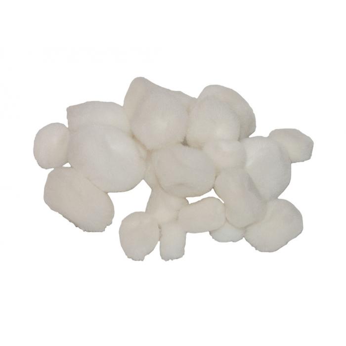 Bambule bíle ve velikosti 10; 15; 20; a 25 mm.