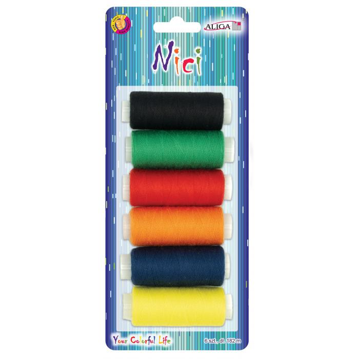 Barevné nitě - 6 barev kat.č:NIT-1406EAN:5902150651406Skladem:4 balmin.odběr:1 balVelikost:6 x 182 m Výrobce:Aliga Barevné nitě na blistru.Balení obsahuje 6 barev.