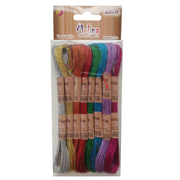 Barevné metalické provázky Mulina, 8 m, 8 barev.