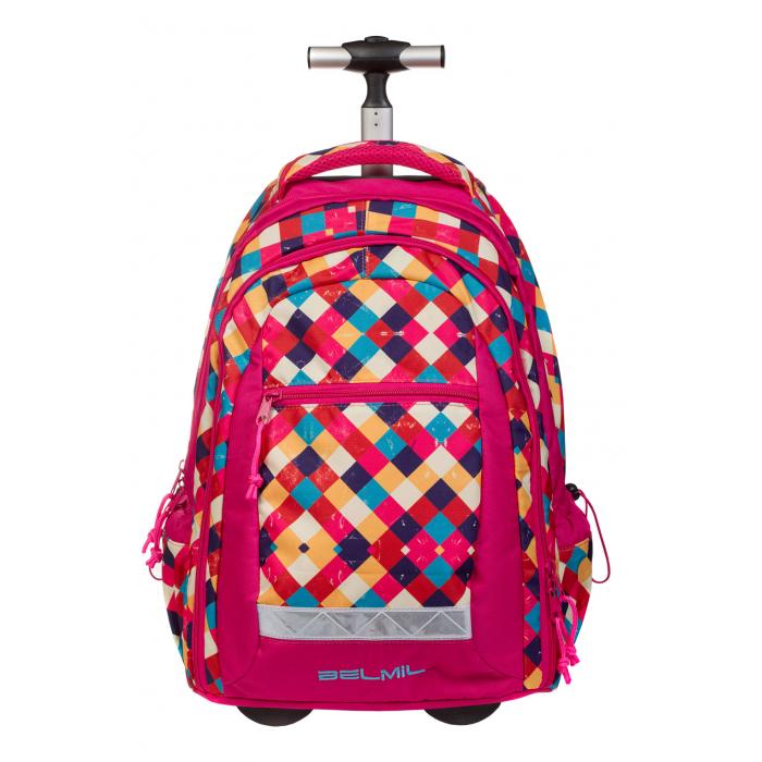 Školní batoh s kolečky (1900g) Color Mix s mnoha funkčními prvky. Teleskopická rukojeť. Vyroben z vysoce kvalitního, pevného a nepromokavého materiálu. Zesílená konstrukce. Polstrované ramenní popruhy. Polstrovaná rukojeť. Reflexní prvky.