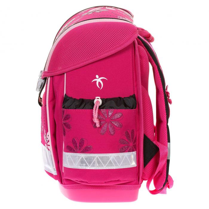 Lehký školní batoh (1000g) + penál Amazing butterfly s mnoha funkčními prvky. Vyroben z vysoce kvalitního, pevného a nepromokavého materiálu. Zesílená konstrukce a pevné dno pro lepší stabilitu. Ergonomicky tvarovaná polstrovaná záda a ramenní popruhy. Gumová rukojeť, poutko pro zavěšení. Spolehlivý a snadno použitelný kovový zámek. Reflexní prvky na všech stranách pro větší bezpečnost a viditelnost.