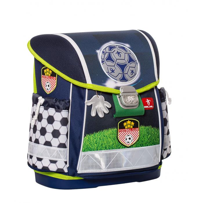 Lehký školní batoh (1000g) Football club s mnoha funkčními prvky. Vyroben z vysoce kvalitního, pevného a nepromokavého materiálu. Zesílená konstrukce a pevné dno pro lepší stabilitu. Ergonomicky tvarovaná polstrovaná záda a ramenní popruhy. Gumová rukojeť, poutko pro zavěšení. Spolehlivý a snadno použitelný kovový zámek. Reflexní prvky na všech stranách pro větší bezpečnost a viditelnost.