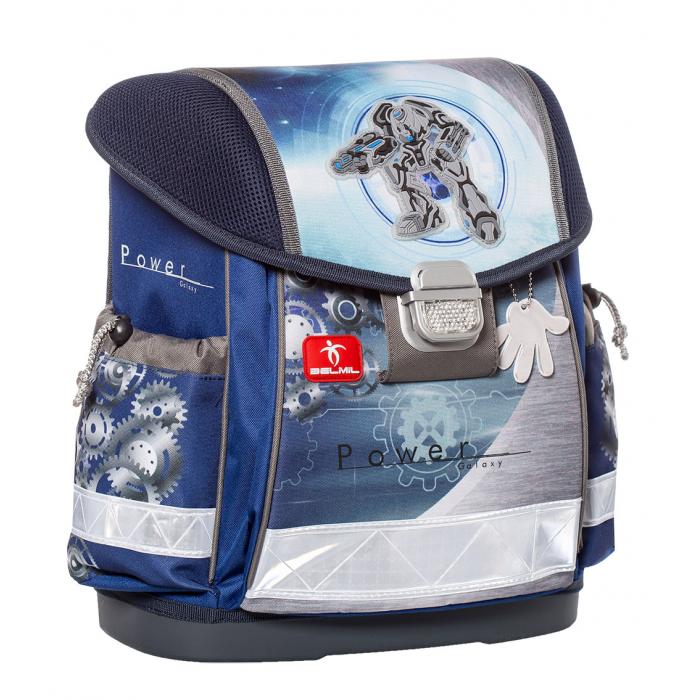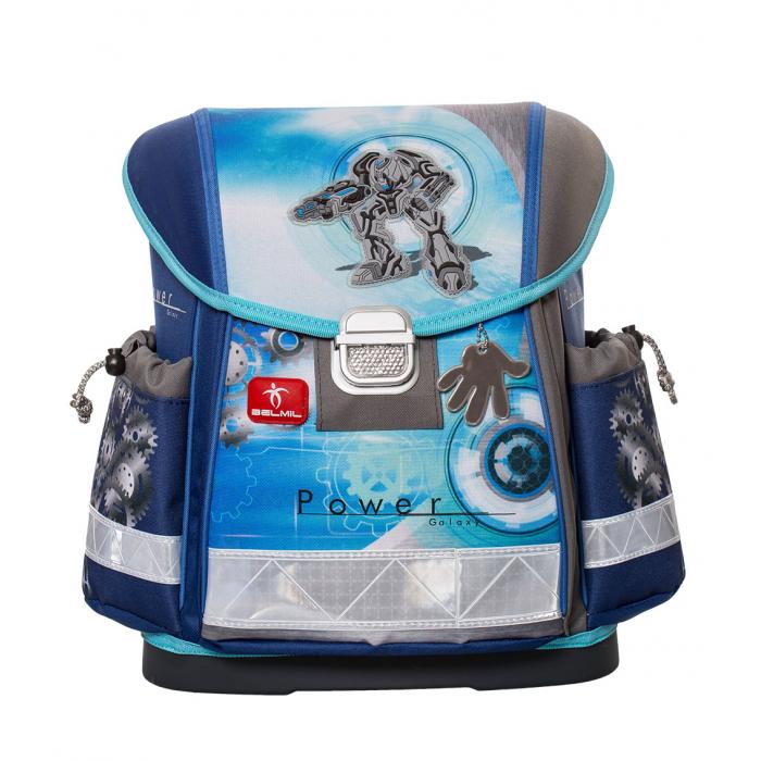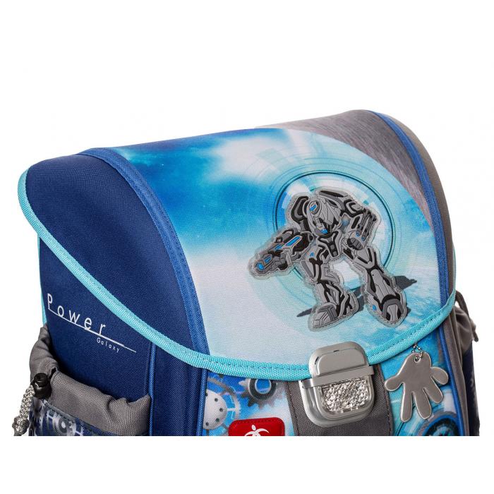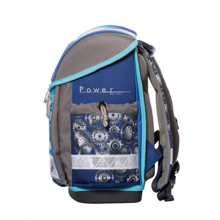 Lehký školní batoh (1000g) Power Galaxy s mnoha funkčními prvky. Vyroben z vysoce kvalitního, pevného a nepromokavého materiálu. Zesílená konstrukce a pevné dno pro lepší stabilitu. Ergonomicky tvarovaná polstrovaná záda a ramenní popruhy. Gumová rukojeť, poutko pro zavěšení. Spolehlivý a snadno použitelný kovový zámek. Reflexní prvky na všech stranách pro větší bezpečnost a viditelnost.