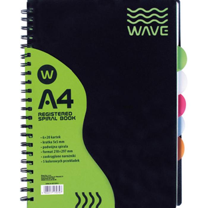 Poznámkový blok s boční spirálou A6, 120 listů, čtverečkovaný.