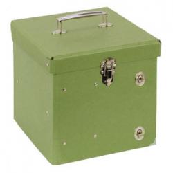 Kovová pokladna s klíčem.