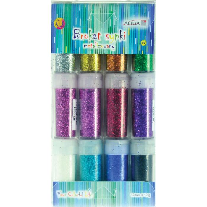 Sypký brokát v praktickém kelímku. Jeden kelímek obsahuje 10 gramů barevného metalického brokátu. Celé balení obsahuje 12 ks.