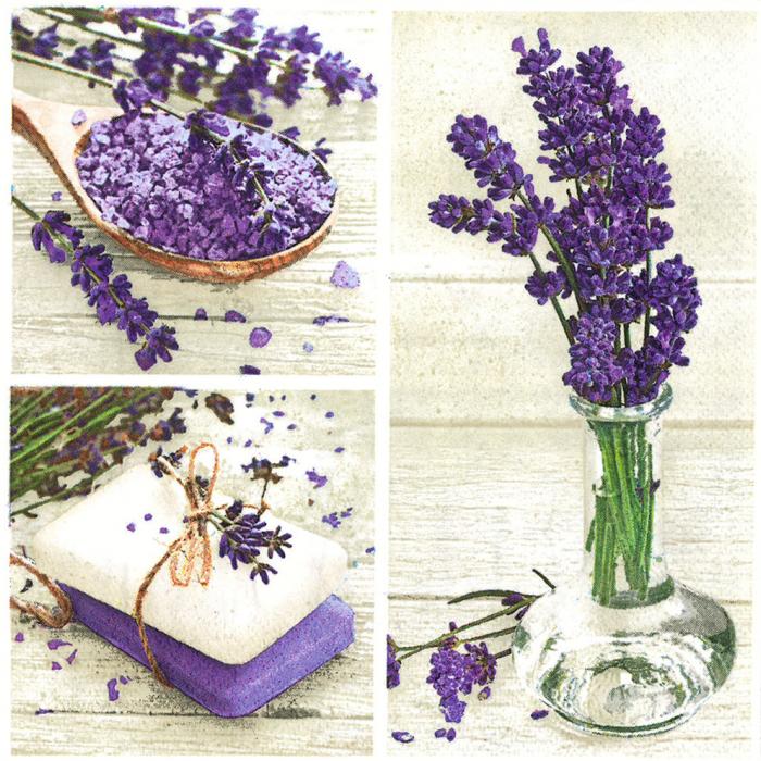 Papírové ubrousky Pol-Mak: Lavender Spa Squares, 20 ubrousků, třívrstvé, 33x33cm.
