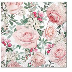 Papírové ubrousky Paw: Gorgeous Roses, 20 ubrousků, třívrstvé, 25x25cm.