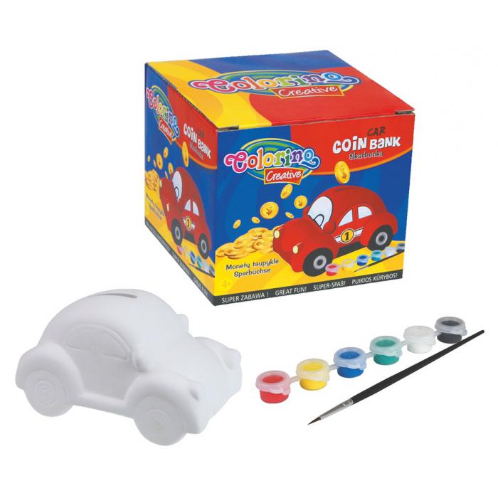 pokladnička ve tvaru autíčka; štětec; 6 barev.