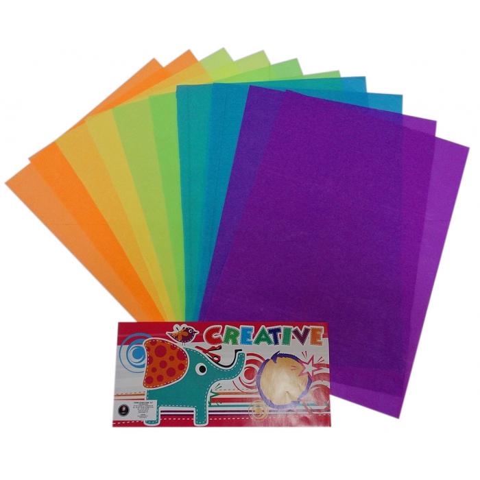 1 sešit obsahuje 10 listů 24x31 cm barevného hedvábného papíru.