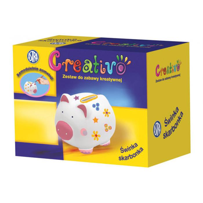 Creativo pokladnička prasátko kat.č:327 112 002EAN:0Skladem:NEmin.odběr:1 balVelikost: Výrobce:Astra Obsahuje:kasičku prasátko k vymalování, 6 akrylových barev, štětec
