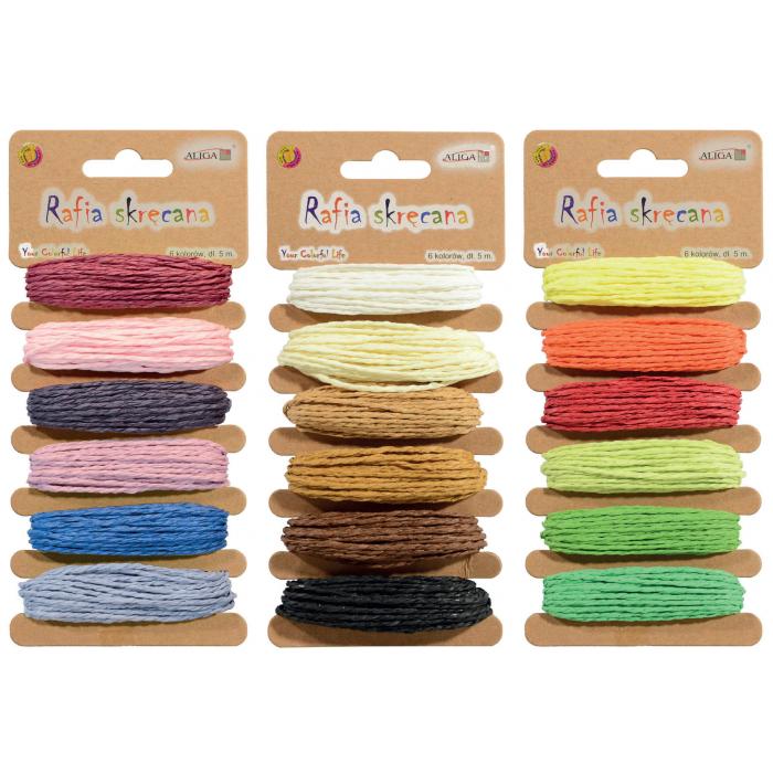 Raffia provázek, 5m, 6 barev, 3 sestavy.