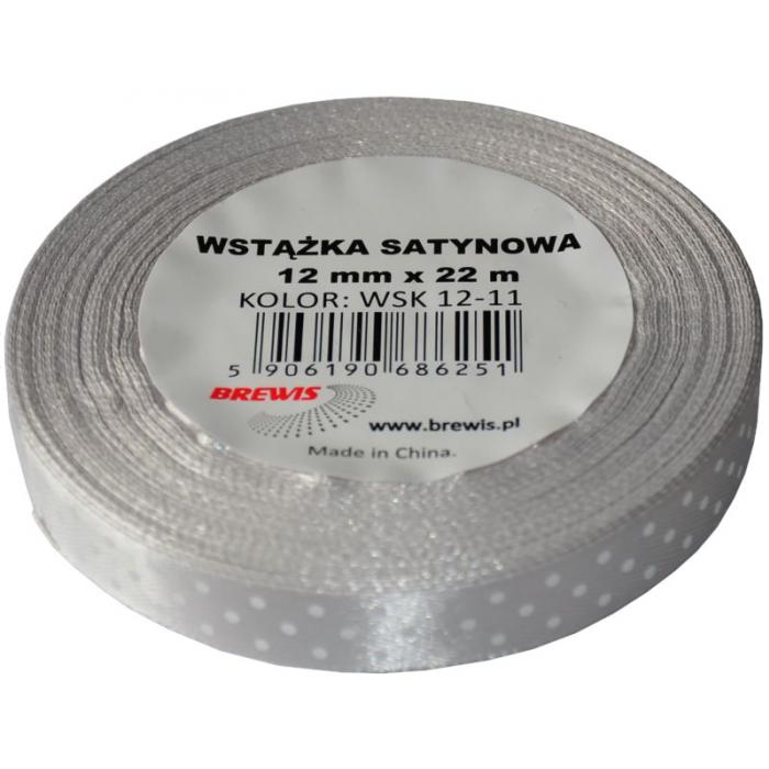 Stuha atlasová s puntíky 12mm šedá kat.č:WSK 12-11EAN:5906190686251Skladem:ANOmin.odběr:1 ksVelikost:12mm x 22m Výrobce:Brewis Atlasová stuha jednolící s puntíky 12mm x 22m.Barva: šedá.