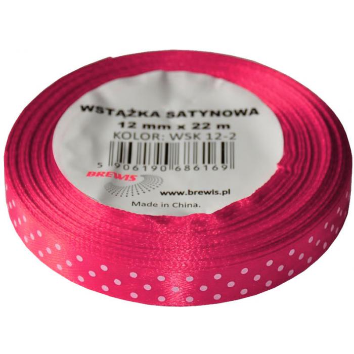 Stuha atlasová s puntíky 12mm růžová kat.č:WSK 12-14EAN:5907611702116Skladem:ANOmin.odběr:1 ksVelikost:12mm x 22m Výrobce:Brewis Atlasová stuha jednolící s puntíky 12mm x 22m.Barva: růžová