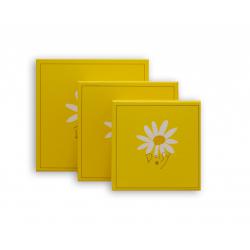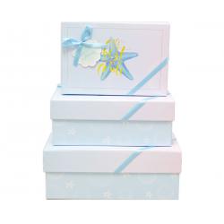 Dárkové krabice - barevný vzor s listy a zelenou krabicí.