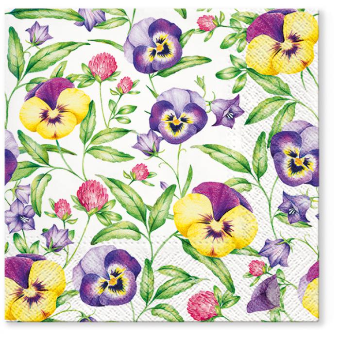 Papírový ubrousek Beautiful Pansies TL 703100 kat.č:TL 703100EAN:0Skladem:ANOmin.odběr:1 bal po 20 ksVelikost:Lunch Výrobce:Paw TeTe Papírové ubrousky Paw TeTe: Beautiful Pansies, 20 ubrousků, třívrstvé, 33x33cm.