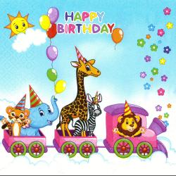 Papírové ubrousky Pol-Mak: Happy Birthday Train, 20 ubrousků, třívrstvé, 33x33cm.