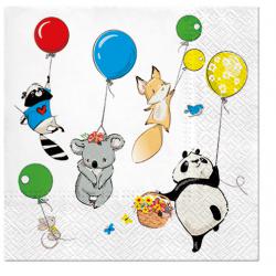 Papírové ubrousky Paw: Animals Party, 20 ubrousků, třívrstvé, 33x33cm.