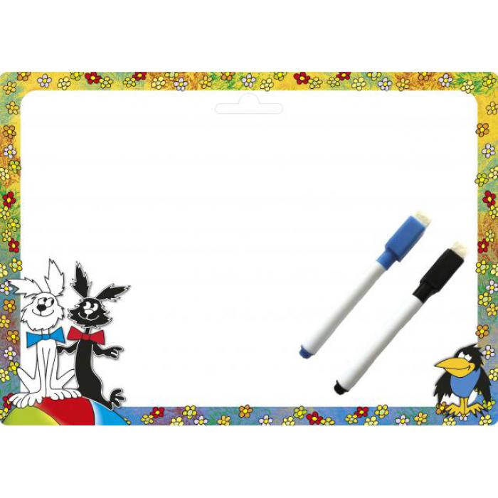 Oboustranná stíratelná tabulka včetně hadříku a popisovače.