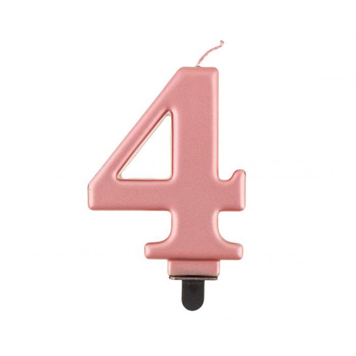 Starorůžová dortová svíčka č. 4 s metalickým leskem.