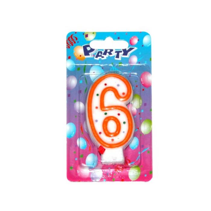 Dortová svíčka s červeným okrajem a s puntíky, číslo 6.