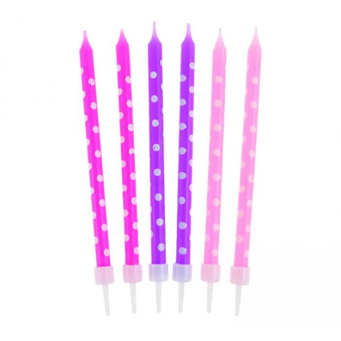 Dortové svíčky Dots - fialové, s podstavcem, 24ks, 10cm