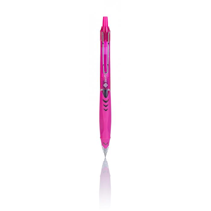 Hrot pera obsahuje dvě iridiové kuličky, které zvyšují lehkost a rychlost psaní. Speciální rychleschnoucí gelový inkoust zabraňuje znečištění a nerozmazává se. Ergonomicky tvarovaná rukojeť poskytuje pohodlné držení.