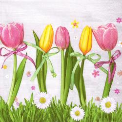 Papírové ubrousky Pol-Mak: Pink & Yellow Tulips, 20 ubrousků, třívrstvé, 33x33cm.