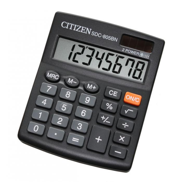 Stolní kalkulačka CITIZEN SDC-805BN kat.č:4966006687675EAN:4562195133308Skladem:NEmin.odběr:1 ksVelikost:131 × 102 × 18 mm Výrobce:CITIZEN 8místný displej, druhá odmocnina, procenta, duální napájení.