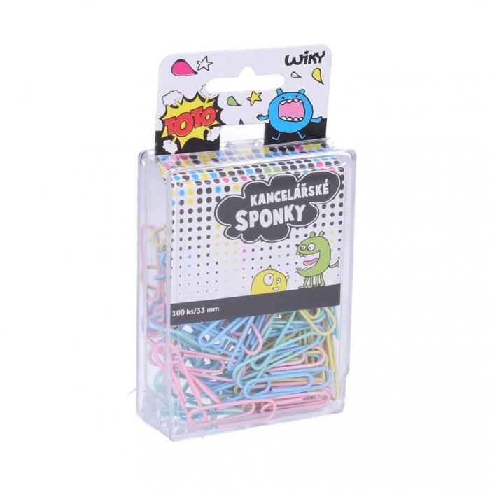 Pastelové kancelářské spony v krabičce, 33mm, 100ks.