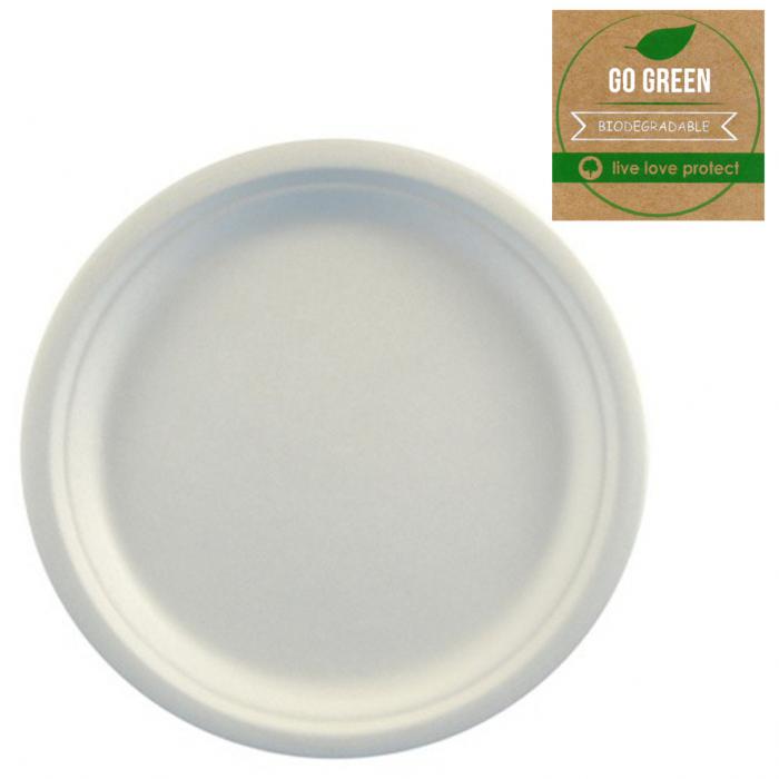 Eko talíř z cukrové třtiny Go Green kat.č:08006EAN:5907667208006Skladem:NEmin.odběr:1 bal po 6 ksVelikost:23 cm / 6 ks Výrobce:Arpex Biodegradovatelný talíř z cukrové třtiny Go Green.Balení obsahuje 6 ks.