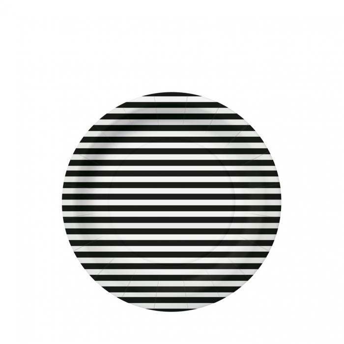 Papírové talíře Stripes černý, průměr 18 cm, balení obsahuje 10ks.
