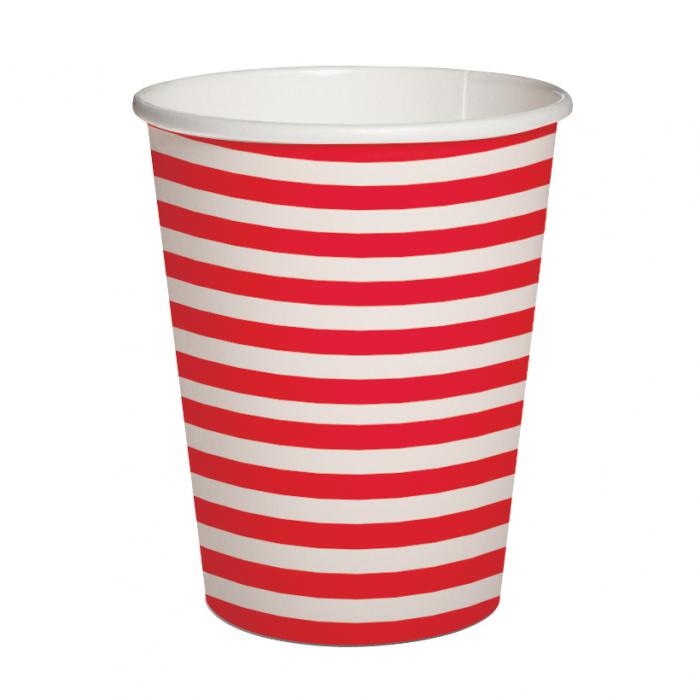 Papírové kelímky Stripes červené, obsah 250ml, balení obsahuje 10ks.