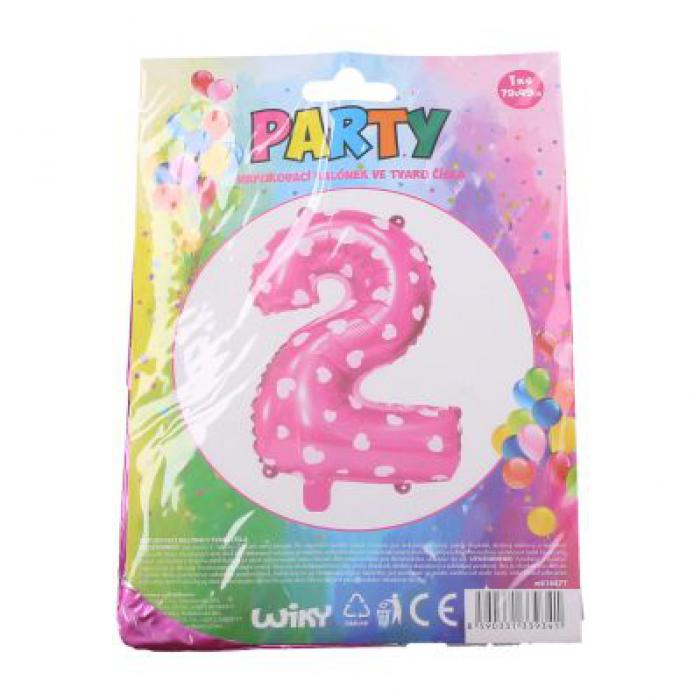 Nafukovací balónek ve tvaru čísla 2, balení obsahuje 1 ks, barva: růžová.