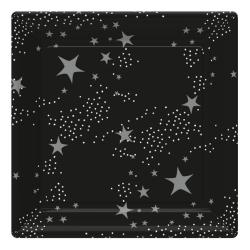 Čtvercový papírový talíř v černém provedení s hvězdami. Velikost talíře: 23 cm, 8 ks v balení....
