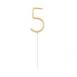 Zlatá dortová svíčka č. 9 s metalickým leskem.