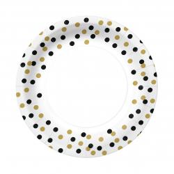Papírové talíře Confetti Gold&Black, průměr 23 cm, balení obsahuje 10ks.