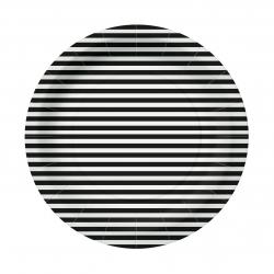 Papírové talíře Stripes černé, průměr 23 cm, balení obsahuje 10ks.