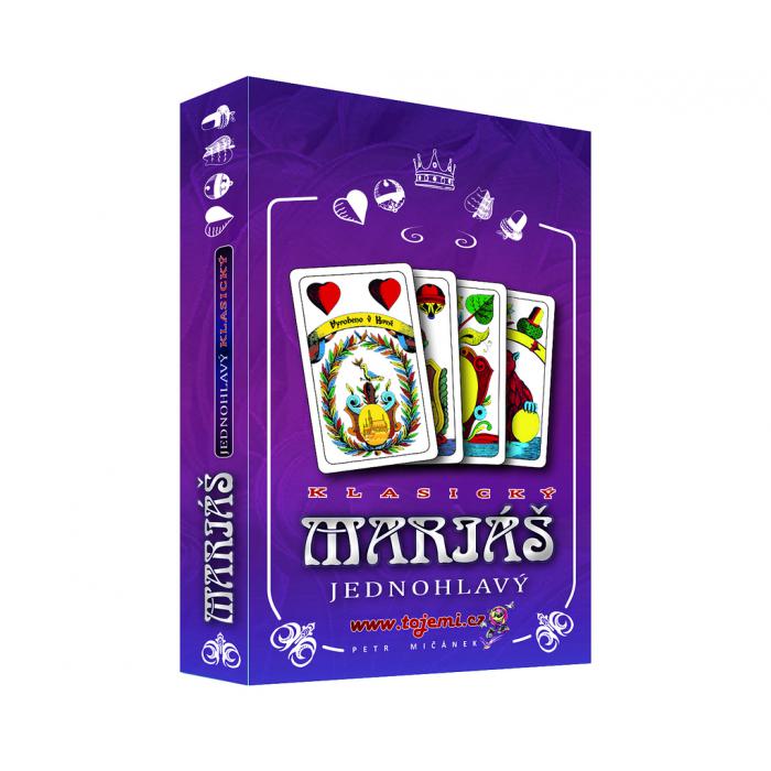 Karty Mariáš v papírové krabičce, jednohlavé.