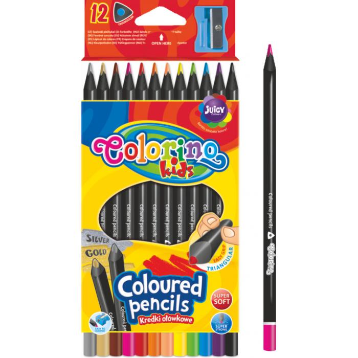 Colorino pastelky z černého dřeva 12 barev 55796PTR kat.č:5907690855796EAN:0Skladem:ANOmin.odběr:1 balVelikost:12 barev Výrobce:Patio Trojhranné pastelky z černého dřeva Colorino. 12 barev, včetně stříbrné a zlaté.
