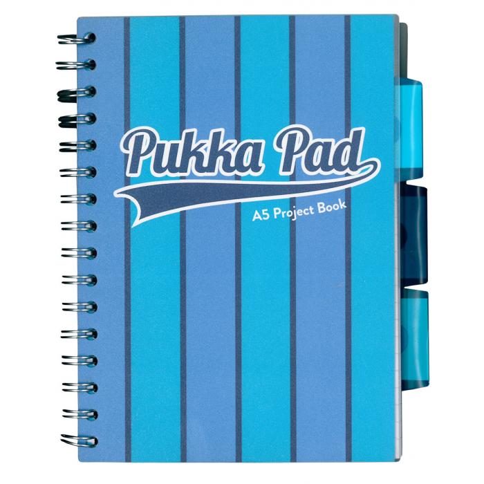 Poznámkový blok s boční spirálou a polypropyleonvým obalem, A5, 100 listů, linkovaný. Barevné rozlišovače pro lepší orientaci. Perforované stránky.