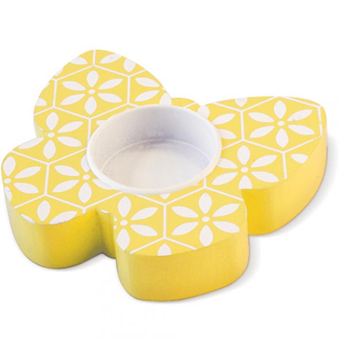 Dřevěný stojánek na čajovou svíčku - žlutý
